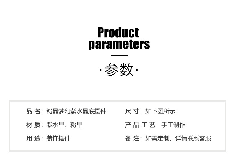 粉晶原石底座+粉晶(高约16.5cm),紫水晶原石底座+紫水晶(高约14.5cm) |