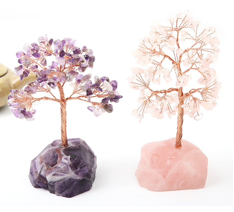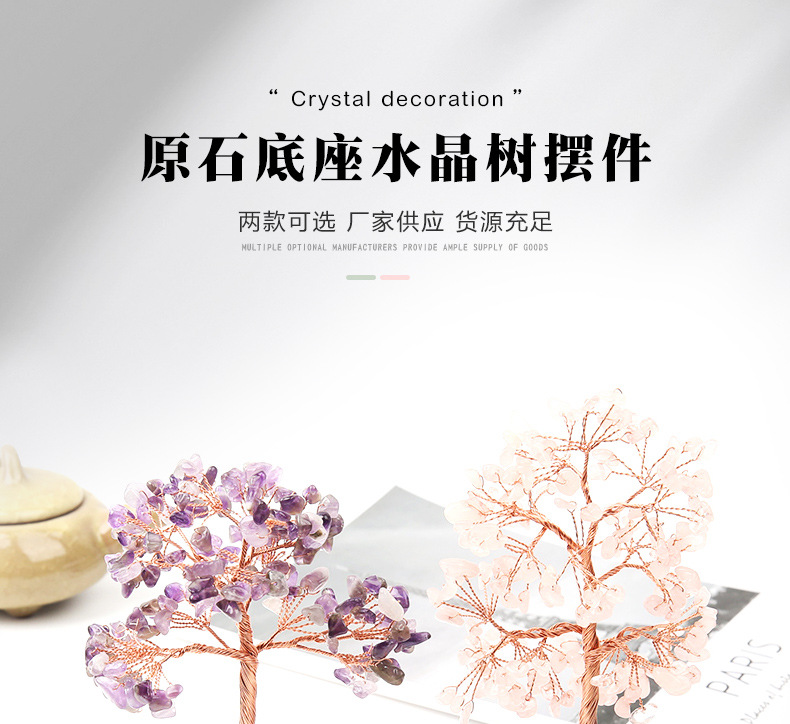 UncategorizedNatural Pink Crystal Dreamy Amethyst Original Stone Base Pink Crystal Amethyst Tree Ornament Handmade Home Office Decoration